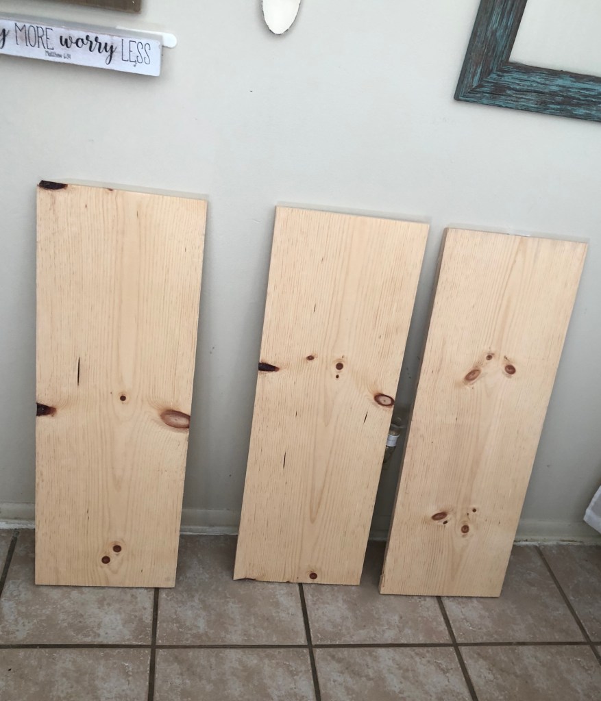 I’m a little uncomfortable with certain power tools so I don’t even bother with them, YET. I will eventually out grow this but right now final destination is the movie that plays in my head around large power tools. Luckily, Lowe’s & Home Depot are my saving grace because they will cut wood purchased at their respective store to your desired length. I had the 8 foot board I purchased cut evenly in three piece. I don’t recommend adding to many shelves because you will go from bar cart to bar case.